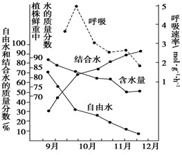 B.冬季来临过程中,自由水明显减少是呼吸速率下降的主要原因