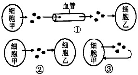 1、选择题 下图表示人体内化学物质传输信息的3种方式。甲状腺激素和神经递质的传递方式依次是