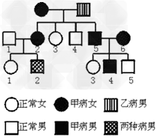2、连线题 下图是患甲病(显性基因A,隐性基因a)和乙病(显性基因B,隐性基因b)两种遗传的系谱图,据图回答问题: