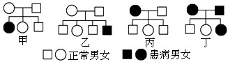 4、选择题 下图所示为四个遗传系谱图,则下列有关的叙述中不正确的是