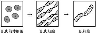2、选择题 将小鼠myoD基因导入体外培养的未分化肌肉前体细胞,细胞分化及肌纤维形成过程如图所示,下列叙述正确的是
