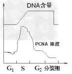 5、选择题 PCNA是一类只存在于增殖细胞中的阶段性表达的蛋白质,其浓度在细胞周期中呈周期性变化(如下图),检测其在细胞中的表达,可作为评价细胞增殖状态的一个指标。下列推断错误的是?