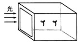 3、选择题 植物地上部分向光生长,根背光生长。取正在萌发的种子贴附在琼脂板上,再将琼脂板插入透明盒内培育,五面遮光,仅从一侧给予光照(如图所示)。幼苗根的生长方向将是