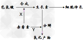 1、选择题 赤霉素与生长素都能促进植物茎的伸长,二者的关系可用下图表示。图中X和Y依次表示赤霉素对生长素的合成、分解具有的作用是