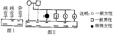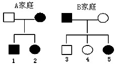 4、选择题 下图是A、B两个家庭的色盲遗传系谱图,这两个家庭由于某种原因调换了一个孩子,则调换的两个孩子是