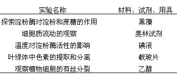 (1)请将上列实验名称与材料、试剂、用具的对应关系用连线表示,每项只准选择一次。