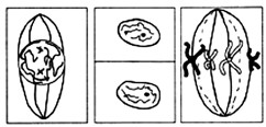 (3)某同学做“观察植物细胞的有丝分裂”实验时,绘制了细胞分裂期的三个时期模式图,请你在画出细胞分裂期中所缺时期的模式图。