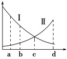 1、选择题 某种群死亡率如下图中Ⅱ,出生率如图中Ⅰ,则在哪一时期此种群的个体总数达到其生活环境负荷量的顶点