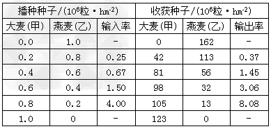 3、选择题 在控制条件下将生理特性十分相似的甲、乙两种农作物以不同比例混种,对收获的种子进行统计分析,计算不同种植比率(甲/乙)下的收获比率,结果如下表: