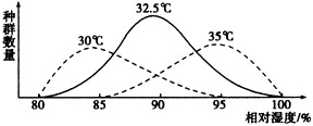 A.温度为32.5℃时,蝗虫对湿度的适应范围最窄