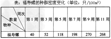 1、选择题 “水稻杀手”福寿螺是我国危害最大的外来物种之一。 某校生物小组在一块面积为500m2 的水稻田中放入200只大小不一的福寿螺,然后调查其种群密度的变化,结果如下表。下列说法正确的是