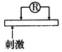 5、选择题 将记录仪(R)的两个电极置于某一条结构和功能完好的神经表面,如图,给该神经一个适宜的刺激使其产生兴奋,可在R上记录到电位的变化。能正确反映从刺激开始到兴奋完成这段过程中电位变化的曲线是