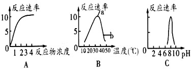 4、连线题 下列A、B、C三图依次表示酶浓度一定时,反应速率与反应物浓度、温度、pH的关系。请据图回答下列问题。