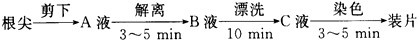 (4)观察洋葱根尖细胞有丝分裂实验,制作装片过程如下: