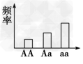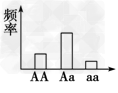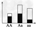 3、选择题 某种群中AA、Aa、aa的基因型频率如图,其中阴影部分表示繁殖成功率低的个体。则该种群经选择之后,下一代中三种基因型频率的结果最可能是