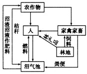 4、选择题 某地通过新建沼气池和植树造林,构建了新型农业生态系统(如图所示)。下列有关叙述不正确的是