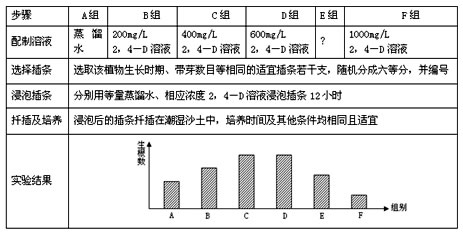 2、连线题 为探究生长素类似物2,4-D对某植物插条生根的影响,一实验小组按下表进行了实验:
