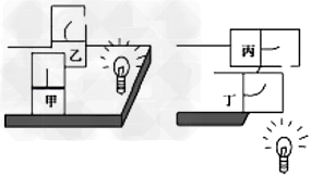(2)将甲、乙、丙、丁均用不透光的牛皮纸包严(留出幼苗生长的足够空间),放在实验台上,甲、乙直立放置,在乙装置的一侧开直径1cm左右的小口,在它们的侧面0.5m处用100W的白炽灯连续照射;丙、丁水平放置,在丙装置的正对地面处开直径1㎝左右的小口,在它们的下方0.5m处用100W的白炽灯连续照射(装置如图所示);甲、乙、丙、丁的其他条件相同且适宜。