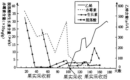 2、连线题 研究人员测定了香梨果实从形成到成熟及采收后某些激素含量的动态变化,其结果如下图所示,请分析并回答: