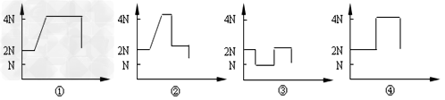 4、选择题 如图所示,横轴表示细胞周期,纵轴表示一个细胞核中DNA含量或染色体数目变化情况,据图分析,表示有丝分裂中DNA含量变化、染色体数目变化和减数分裂过程中DNA含量变化、染色体数目变化的曲线依次是: