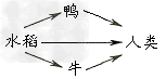 5、选择题 假设下图所示食物网中水稻固定的太阳能总量为N,能量传递率为10%,则人类获得的能量