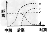 2、选择题 下图中哪一条曲线能表示细胞有丝分裂过程中染色体的着丝点与相应极之间的平均距离