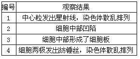 1、选择题 下表为某同学观察到的4块装片中细胞有丝分裂结果,能表示动物细胞有丝分裂前期与末期的装片依次是