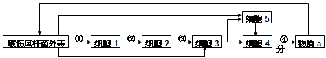 (4)此人脚底受伤后出现了红肿,医生担心她感染破伤风杆菌,立刻给她注射______进行应急免疫治疗。该方法属于______(A.非特异性免疫;B.特异性免疫)。