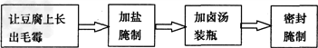 3、连线题 (选做题)腐乳是我国古代劳动人民创造出的一种经过微生物发酵的大豆食品。下面是腐乳制作的实验流程示意图。请回答下列相关问题: