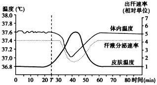 (1)解释0-25min的体内温度与皮肤温度的不同。