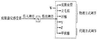 (3)皮肤? 温度感受器→传入神经→体温调节中枢→传出神经→甲状腺非条件