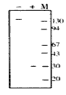 3、选择题 蛋白质的肽链之间可通过二硫键维持稳定。已知不同的多肽产物可因相对分子质量不同而以电泳方式分离。下图是一个分析蛋白质的电泳结果图,“一”代表没加还原剂,“+”代表加有还原剂,还原剂可打断二硫键,“M”代表某些已知相对分子质量的蛋白质或多肽,M右侧的数字代表这些蛋白质或多肽的相对分子质量。选项中的“一”代表二硫键。根据结果,选项中最能代表该蛋白质结构的是