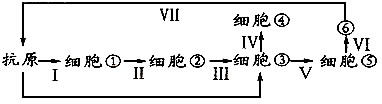⑤图中Ⅵ、Ⅶ过程属于体液免疫的效应阶段,细胞①可以参与感应和效应阶段
