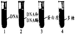 2、选择题 在肺炎双球菌的转化实验中,在培养有R型细菌的1、2、3、4四个试管中,依次加入从S型活细菌中提取的DNA、DNA和DNA酶、蛋白质、多糖,经过培养,检查结果发现试管内仍然有R型细菌的是