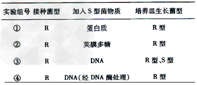 3、选择题 用R型和S型肺炎双球菌进行实验,结果如下表。从表可知