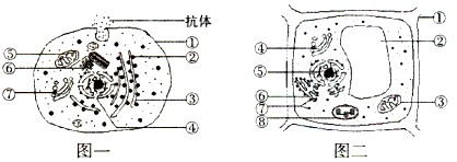 (1)图一中参与抗体合成及分泌的具膜细胞器有_________(填标号)。