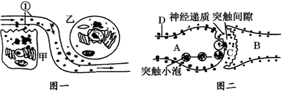 图一是分泌细胞(甲)分泌的某种物质(①)与靶细胞(乙)结合的示意图: