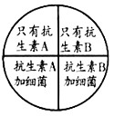 3、选择题 按下列方法设计的实验(培养基中含有各种基本营养成分)中,可被用来检验两种抗生素的杀菌作用的是