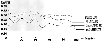 2、综合题 库尔勒香梨果实中存在游离态和结合态两大类呈香物质。结合态呈香物质大部分以糖苷形式存在,本身没有香气,但在β-D-葡萄糖苷酶的作用下能分解释放出具有挥发性的游离态呈香物质。若香梨在贮藏期间上述转变过程迅速,会导致部分香气成分丧失,影响果实的风味和品质。科研人员进行了相关实验(实验结果如下图所示),请分析回答: