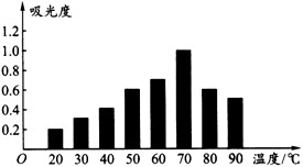 4、选择题 为研究和开发天然食用色素,某研究小组取等量相同品种的红枣,采用溶剂提取红枣中部分红色素,用紫外光谱仪测定不同温度下提取液的吸光度,实验结果如下图所示。已知吸光度越大,红色素含量越高。下列分析较合理的是