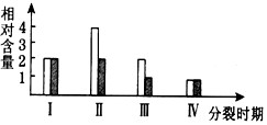 2、选择题 下图表示人体一个细胞分裂时,细胞核中染色体数(有阴影)和DNA分子数(无阴影)在Ⅰ、Ⅱ、Ⅲ、Ⅳ四个时期的统计数据。则可能含有2个染色体组的时期是