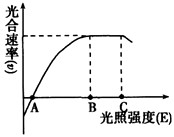 (3)下图表示温室内光照强度(E)与作物光合速率(v)的关系。在温度、水分和无机盐均适宜的条件下,当E<B时,增大光合速率的主要措施是_______;当B<E<C时,限制作物增产的主要因素是______;当E>C时,可采取_______措施,保证作物的最大光合速率。如遇连阴天,温室需补光,选用_____光最有效。