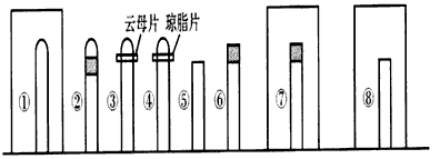 2、连线题 对燕麦胚芽鞘做如下图处理:①放在暗盒里;②在胚芽鞘尖端的下部用锡箔遮住;③在尖端横向插入云母片;④在尖端横向插入琼脂片;⑤切去胚芽鞘尖端;⑥切去胚芽鞘尖端,但在切口上放一含有一定浓度生长素的琼脂小块;⑦切去尖端,在切口上放一含有一定浓度生长素的琼脂小块,放在暗盒里;⑧切去胚芽鞘尖端,放在暗盒里然后都用单侧光照射。