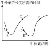 1、选择题 下图表示生长素浓度对植物生长的影响。下列相关叙述正确的是