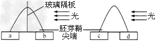 5、选择题 根据图示分析a、b、c、d四个琼脂块中的生长素含量,正确的结论是