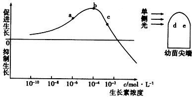 4、选择题 对下图中d、e两点生长素浓度的分析合理的是