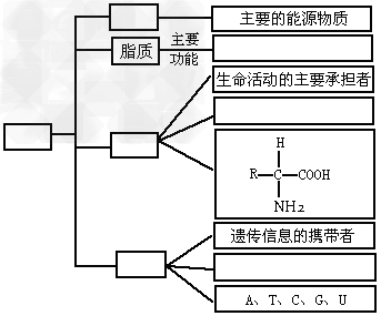 参考答案:血红蛋白? ?脂肪? 染色体(质)? ?纤维素