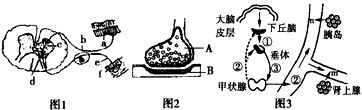2、连线题 下图1是某反射相关结构示意图;图2是图1中某一结构的亚显微结构模式图;图3是人体部分生理过程示意图,m、n代表人体内不同激素。请分析回答下列问题: