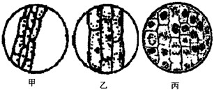 3、选择题 如下图中,若图甲、图乙、图丙是某同学做有丝分裂实验时,在光学显微镜下观察到的图象,下列有关说法正确的是