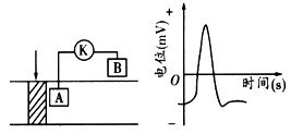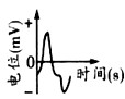4、选择题 神经电位的测量装置如下面装置图所示,其中箭头表示施加适宜刺激,阴影表示兴奋区域。用记录仪记录A、B两电极之间的电位差,结果如下面曲线图。若将记录仪的A、B两电极均置于膜外,其他实验条件不变,则测量结果是